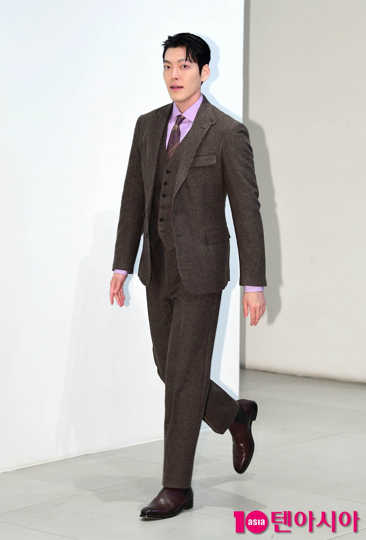 배우 김우빈이 19일 오후 서울 강남구 서울옥션 강남센터에서 열린 랄프 로렌, 스프링 2024 프레젠테이션 행사에 참석해 포즈를 취하고 있다.
