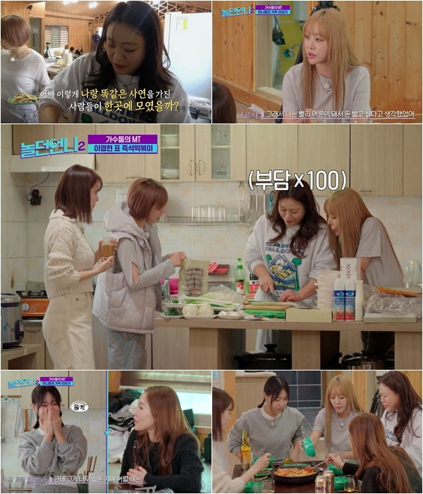 앞서 지옥훈련으로 ‘초심 회복’의 시간을 가졌던 언니들은 드디어 ‘MT의 성지’ 대성리에 입성한다. 숙소에 도착하자마자, ‘분식집 딸’ 이영현은 배고픈 언니들을 위해 손수 떡볶이를 만들고, 이영현표 떡볶이를 맛본 아이비는 “밀키트 내자!”라며 감탄한다.