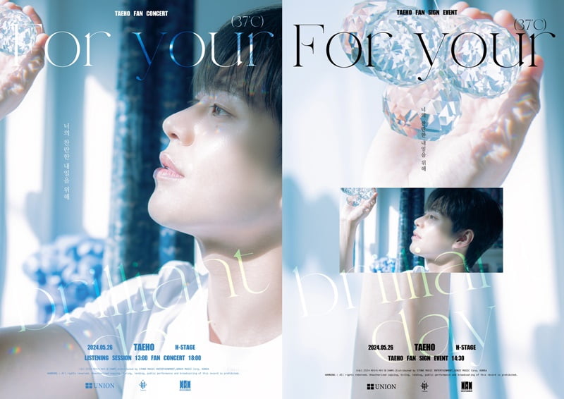 태호는 오는 26일 서울 마포구 H-STAGE에서 2024 TAEHO 단독 콘서트 ‘37℃ : FOR YOUR BRILLIANT DAY’(공연제작 : 유니온픽처스)를 개최하고 팬들을 만난다.