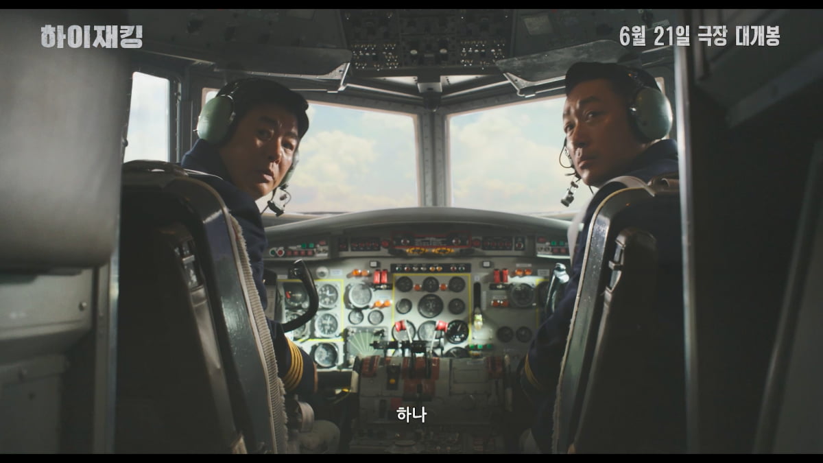 공개된 포스터는 부기장 태인(하정우)에게 총을 겨누고 있는 납치범 용대(여진구)의 일촉즉발 긴장감 넘치는 순간을 포착했다. 머리에 피를 흘리며 기장석에서 이를 걱정스레 지켜보고 있는 기장 규식(성동일), 겁에 질린 모습의 여객기 내 유일한 승무원인 옥순(채수빈)의 모습은 긴박한 상황을 암시한다.