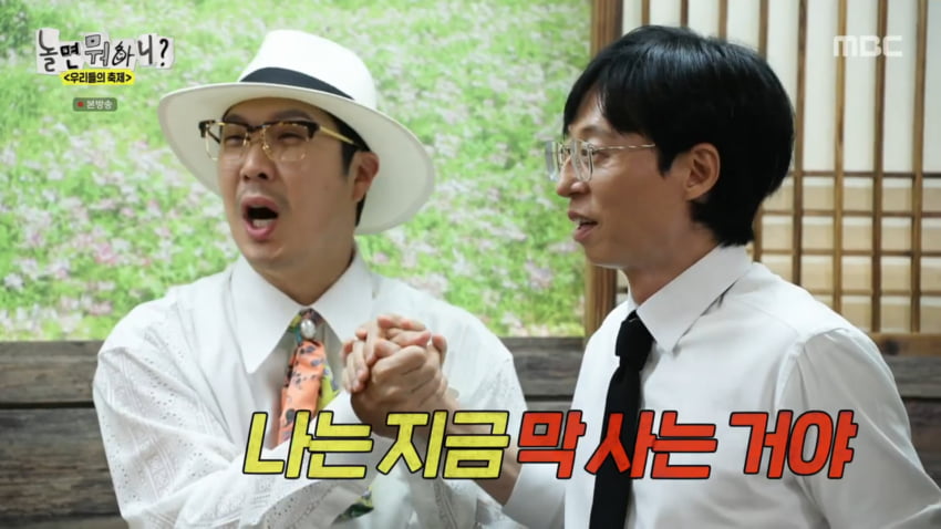 "그래도 남는 친구가 진짜 친구"라고 동의한 유재석은 "요즘 긍정적 생각을 '원영적 사고'라고 하는데, 자기 자신을 올바르게 하는 것이 '강진적 사고'"라고 말했다.