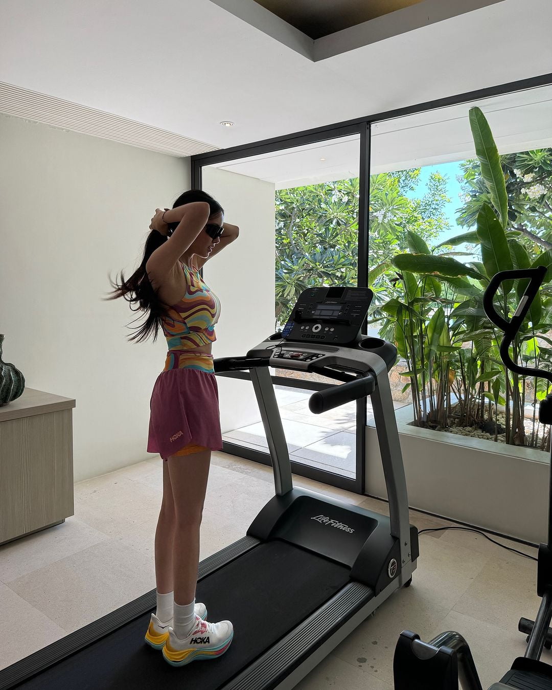 이어 효민은 러닝머신 위에 서 있는 사진을 공개했다. 그는 본격적으로 운동에 나서기에 앞서 머리를 묶고 있다. 운동에 오롯이 집중하려는 그의 열정이 돋보인다. 러닝머신 앞에는 큰 통유리창이 있어 바깥 풍경을 보며 운동을 즐길 수 있다.