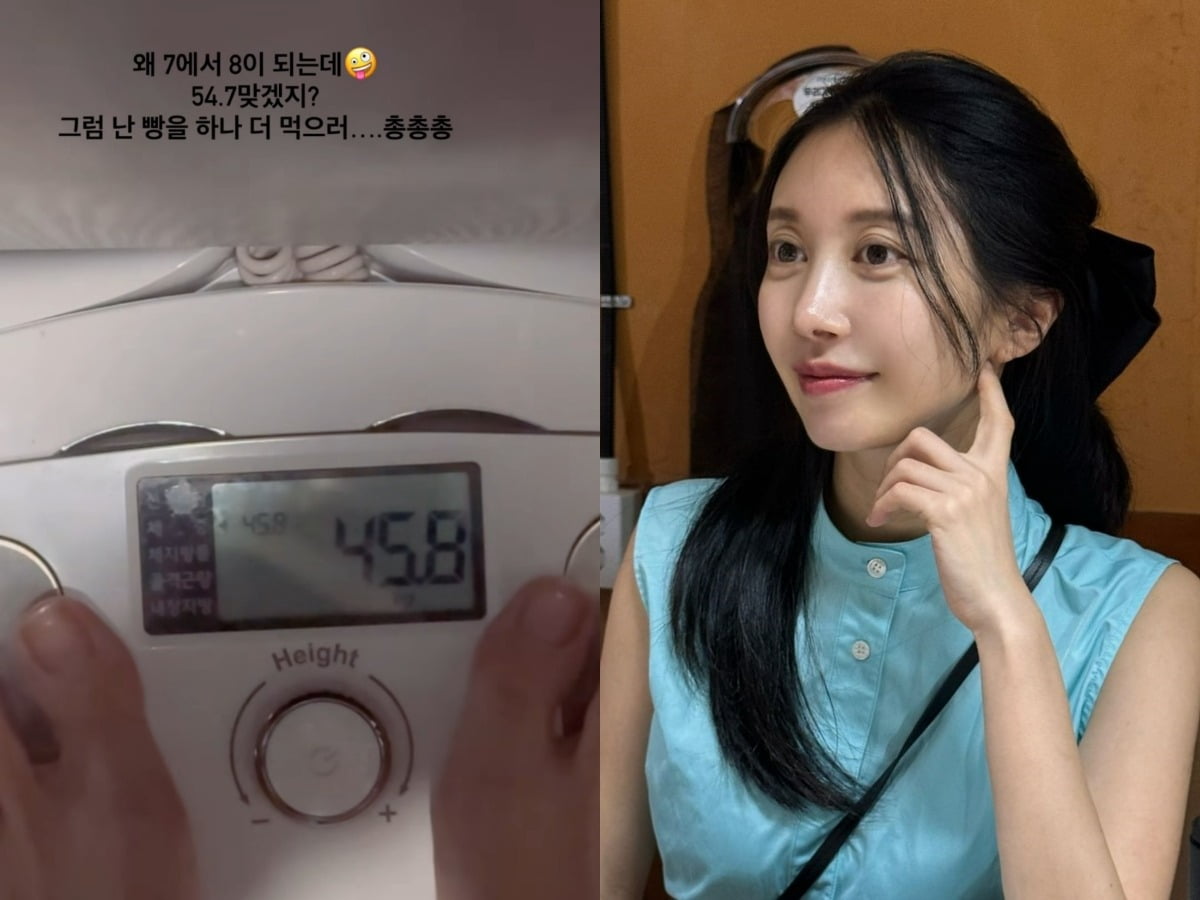 아야네는 21일 자신의 인스타그램에 "왜 7에서 8이 되는데. 54.7 맞겠지? 그럼 난 빵을 하나 더 먹으러... 총총총"이라는 글과 함께 짧은 영상을 올렸다.