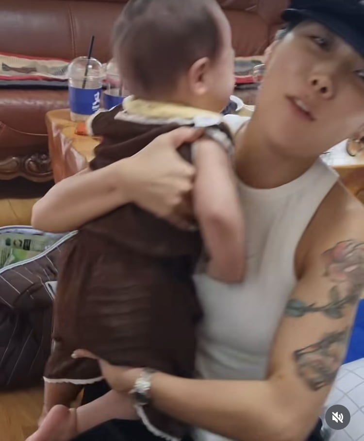 영상 속에는 허니제이가 지인의 어린 아기를 안아보려하자 딸 러브가 목을 놓아 우는 모습이 담겼다.