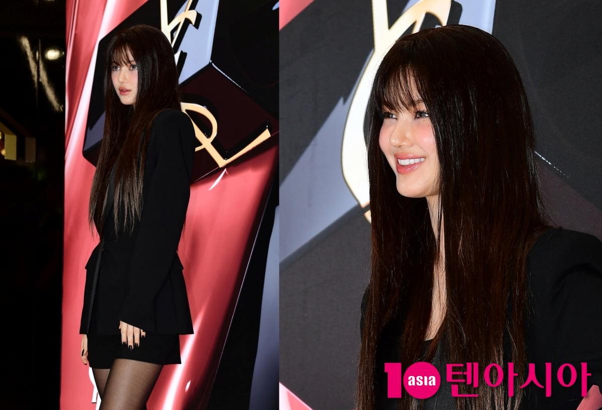 그룹 뉴진스 다니엘이 10일 오후 서울 중구 한 백화점에서 열린 입생로랑 뷰티의 '잉크 바이닐 틴트' 팝업 이벤트 행사에 참석해 포즈를 취하고 있다.