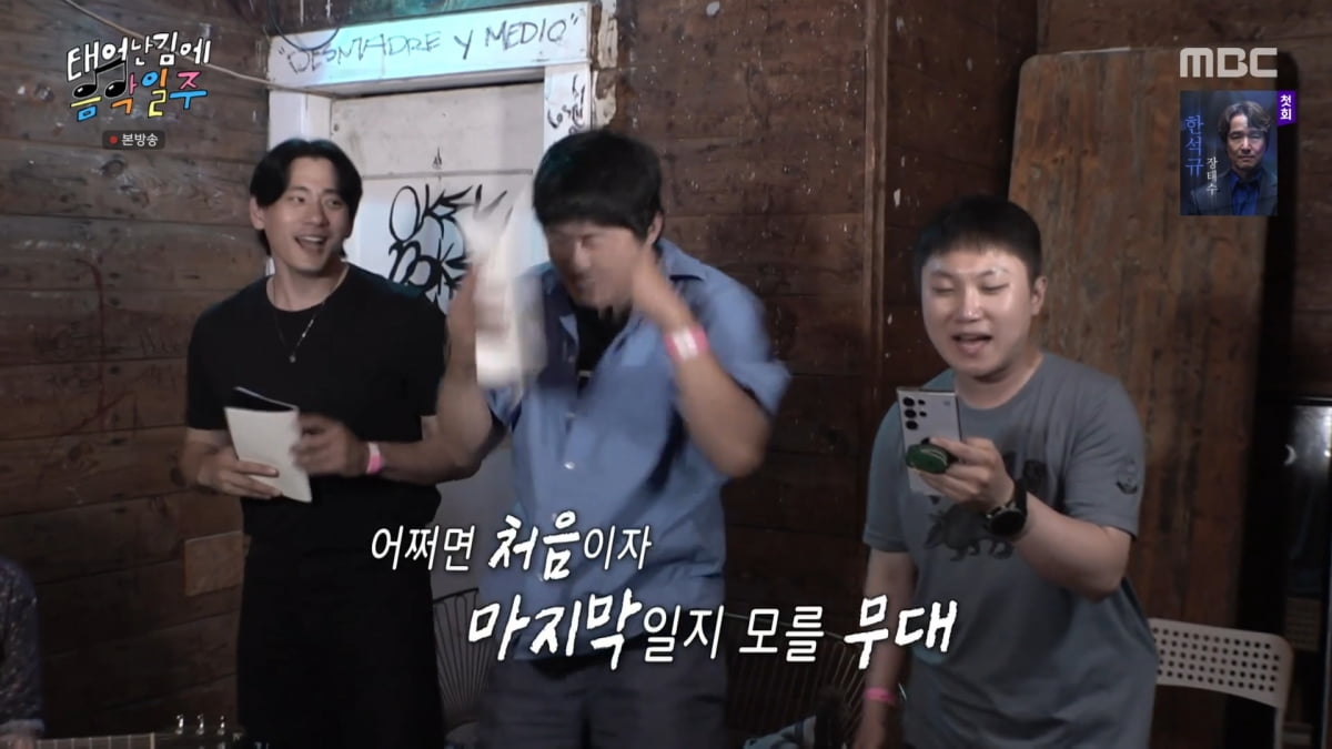 이들은 생각보다 큰 대형 야외무대에 놀라워했다. 그러면서 아무도 관심이 없을까봐 걱정했다. 앞서 노래하는 사람들을 본 유태오는 "마이크가 너무 잘 먹는데?"라며 웃었고, 기안84는 "우리 앞 팀이 좀 망해야 한다"며 긴장감을 드러냈다.