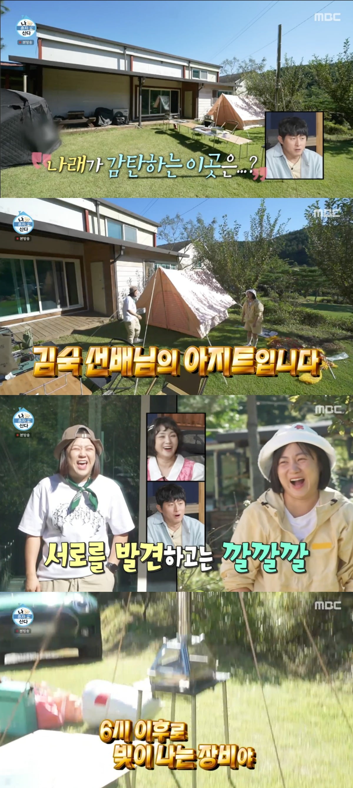 이날 방송에서 가평에 있는 한 캠핑장에 방문한 박나래는 "(지인의) 개인 캠핑장이다. 아시는 분이라 옆 사이트를 빌렸다"고 소개했다. 건물 안에서 나타난 사람은 방송인 김숙이었다.