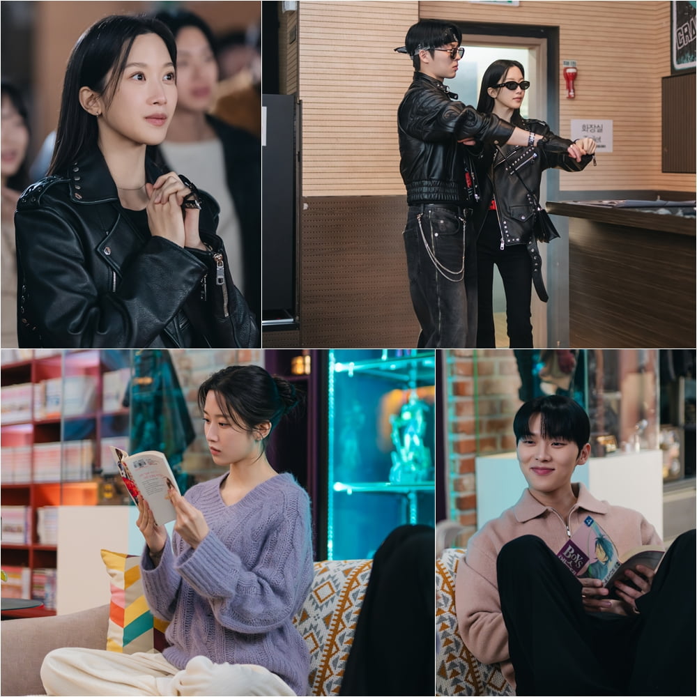 종영까지 단 2회 남겨둔 '그놈은 흑염룡' 측은 하드록부터 만화책까지 취향 듬뿍 담긴 덕질 데이트 스틸을 공개해 사랑스러운 커플 바이브를 자아낸다. 백수정(문가영 분)과 반주연(최현욱 분)의 다정한 덕질 데이트 현장을 담은 스틸을 공개해 본 방송에 대한 기대감이 자극한다. 스틸 속 수정은 제 집처럼 비밀의 방 소파에 자리 잡아 주연이 좋아하는 만화책을 세세히 보며 주연의 귀여운 덕후 취향을 공부하는 모습. 이에 주연은 만화책은 제쳐두고 수정 쪽으로 몸을 틀어 사랑스러운 눈빛으로 수정을 바라봐 설렘을 유발한다.