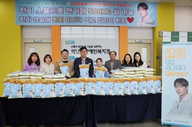 팬카페 관계자는 “연말 기부에 이어 두 번째 진행된 이번 쌀 기부는 가수 환희를 응원하는 팬들의 마음이 모여 이루어진 나눔”이라며 “노래로 위로를 전하는 환희처럼, 팬덤의 선한 영향력도 계속 이어질 수 있어 감사하고 뿌듯하다”고 전했다.