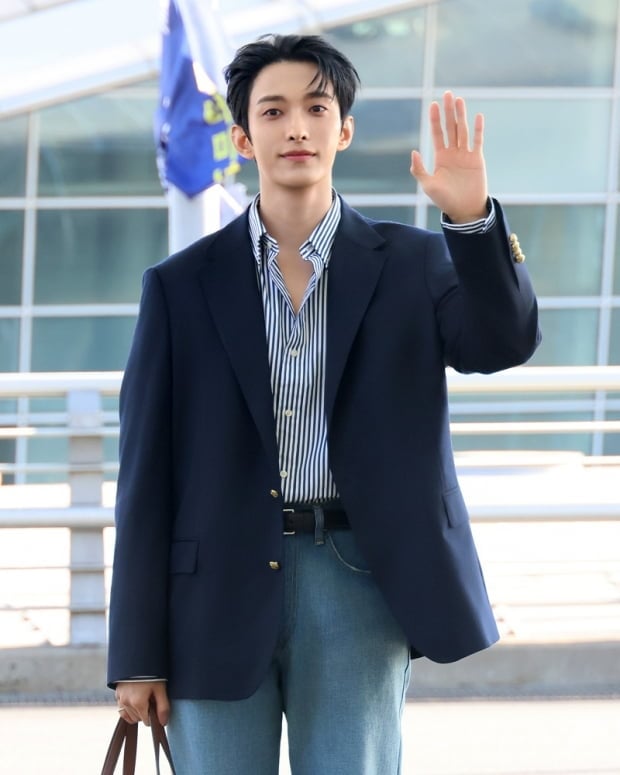 출국길에 선보인 공항패션 아이템은 모두 폴로 랄프 로렌(Polo Ralph Lauren) 제품이다. 폴로 랄프 로렌의 최신 테일러드 실루엣 중 하나인 폴로 클래식 라인으로, 여유로운 핏, 내추럴 숄더, 픽스티치 라펠 디테일을 자랑하는 폴로 클래식 개버딘 블레이저에 클래식핏 스트라이프 포플린 셔츠와 폭이 넓은 실루엣의 배기핏 리빙턴 릴렉스 진과 함께 매치해 클래식하면서도 빈티지스러운 무드를 연출했다.