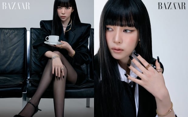 테일러드 점프슈트에 핑크 사파이어와 루비가 세팅된 18K 로즈 골드 '소울', '버블 링', '솔로' 컬렉션을 더해 사랑스러운 반전 스타일을 완성했다. 데뷔 이후 처음 시도한 레드 립 메이크업 역시 눈길을 끌며 새로운 이미지를 예고한다.